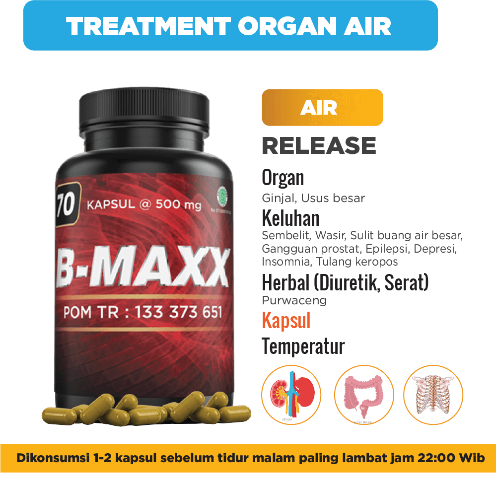 KELUHAN :Sembelit, Wasir, Sulit buang air besar, Gangguan Prostat, Epilepsi, Depresi, Insomnia, Tulang keropos
